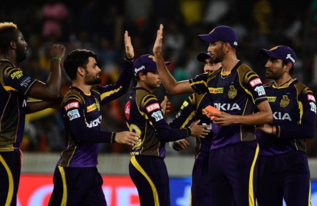 മറുപടി ബാറ്റിങ്ങിനിറങ്ങിയ കൊൽക്കത്തയ്ക്ക് അത്ര നല്ല തുടക്കം ആയിരുന്നില്ല.ടീം സ്കോർ 7 ഇത് നിൽക്കേ ക്രിസ് ലിൻ മടങ്ങി.പിന്നാലെ എത്തിയ റോബിൻ ഉത്തപ്പ നിതീഷ് റാണയെയും കൂട്ടി കരുതലോടെ ടീം സ്കോർ ഉയർത്തി.87 ൽ നിൽക്കേ ഉത്തപ്പ മടങ്ങിയെങ്കിലും നിതീഷ് റാണ പിടിച്ചു നിന്നു.തൊട്ടുപിറകെ അധികം ചലനം ഉണ്ടാക്കാതെ ദിനേശ് കാർത്തിക്കും മടങ്ങി.പിന്നലെ എത്തിയ റസ്സൽ റാണയുമൊത്ത് സ്കോർ ഉയർത്തി.118 ൽ നിൽക്കേ 47 പന്തിൽ നിന്നും 8 ഫോറും 3 സിക്സും അടക്കം 68 റൺസ് നേടി റാണ മടങ്ങി. എന്നിട്ടും പതറാതെ കളിച്ച റസ്സൽ ഷുബ്മാൻ ഗില്ലുമൊത്ത് ടീമിനെ വിജയത്തിലെത്തിച്ചു.ഗിൽ 10 പന്തിൽ നിന്നും 2 സിക്സ് ഉൾപ്പടെ 18 റൺസ് നേടി റസ്സലിനു പിന്തുണ നൽകി. ഹൈദരാബാദിന് വേണ്ടി ഷാകിബ് അൽ ഹസൻ, സന്ദീപ് ശർമ്മ, സിദ്ധാർഥ് കൗൾ, റഷീദ് ഖാൻ എന്നിവർ ഓരോ വിക്കറ്റ് വീതം നേടി.