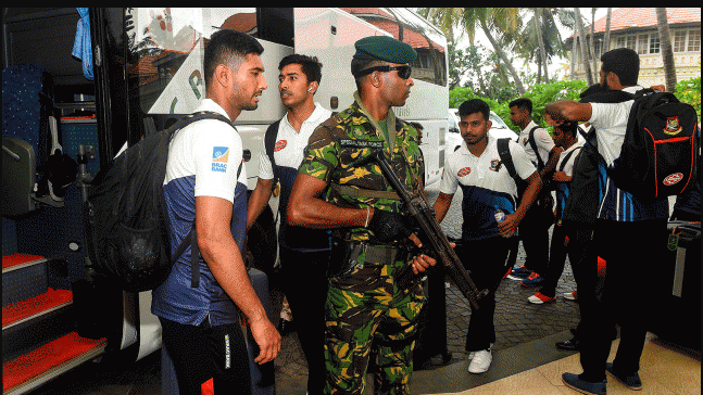 ജൂലൈ 26-ന് ആരംഭിക്കുന്ന ശ്രീലങ്കൻ പര്യടനത്തിനുള്ള ബംഗ്ലാദേശ് ടീം ഇന്നലെ ശ്രീലങ്കയിൽ എത്തി. കനത്ത സുരക്ഷയിലാണ് ബംഗ്ലാദേശ് ടീം ശ്രീലങ്കയിൽ എത്തിയത്. കൊളംബോ വിമാനത്താവളത്തിലാണ് ബംഗ്ലാദേശ് ടീം എത്തിയത്. മൂന്ന് ഏകദിനങ്ങൾ ഉള്ള പരമ്പര ആണ് നടക്കുന്നത്. . ജൂലൈ 26,28,31 എന്നീ ദിവസങ്ങളിലാണ് മത്സരം നടക്കുന്നത്. ഈസ്റ്റർ ദിനത്തിൽ ശ്രീലങ്കയിൽ നടന്ന ആക്രമണത്തിന് ശേഷം ആദ്യമായി ശ്രീലങ്കയിൽ എത്തുന്ന വിദേശ ടീം ആണ് ബംഗ്ലാദേശ്. അതിനാൽ തന്നെ കനത്ത സുരക്ഷയിലാണ് ഇവരെ ഹോട്ടലിൽ എത്തിച്ചത്.