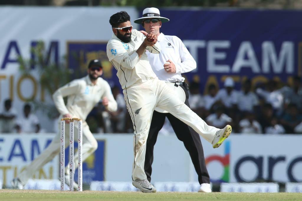 മറുപടി ബാറ്റിങിങ്ങിനിറങ്ങിയ ശ്രീലങ്കയ്ക് വേണ്ടി ആഞ്ചലോ മാത്യൂസ്(50),കുശല്‍ മെന്‍ഡിസ്(53) എന്നിവർ മാത്രമാണ് മികച്ച പ്രകടനം നടത്തിയത്. ഇരുവരും ചേർന്ന് മൂന്നാം വിക്കറ്റിൽ  77 റണ്‍സ്  നേടി. എന്നാൽ ഇവരെ രണ്ട് പേരെയും അജാസ് പട്ടേൽ പുറത്താക്കി. പിന്നീട് വന്നവർ എല്ലാം പെട്ടെന്ന് തന്നെ പുറത്തായി.