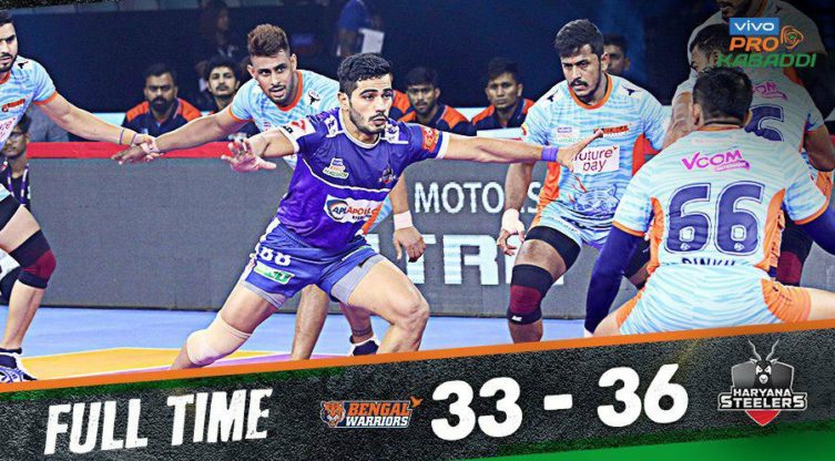 പ്രൊ കബഡി ലീഗിൽ ഹരിയാന സ്റ്റീലേഴ്‌സ് ബംഗാൾ വാരിയേഴ്‌സിനെ തോൽപ്പിച്ചു