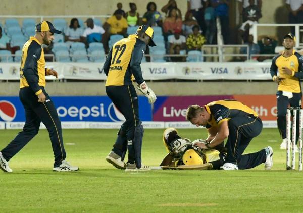 വെസ്റ്റ് ഇൻഡീസ് ഓൾറൗണ്ടർ ആൻഡ്രെ റസ്സലിനെ വ്യാഴാഴ്ച ജമൈക്കയിൽ നടന്ന സിപിഎൽ മത്സരത്തിനിടെ പരിക്ക് പറ്റി. ഹോം ടീമായ ജമൈക്ക തല്ലാവാസിനെ പ്രതിനിധീകരിച്ച് റസ്സൽ 13-ാം ഓവറിൽ ഗ്ലെൻ ഫിലിപ്സിന്റെ വിക്കറ്റിന്ശേഷം ബാറ്റിംഗിനിറങ്ങി. ഹാർഡസ് വിൽജോൻ എറിഞ്ഞ അടുത്ത ഓവറിൽ റസ്സലിൻറെ ഹെൽമെറ്റിൽ ഒരു ബൗൺസർ തട്ടി. പന്ത് കൊണ്ട റസൽ മൈതാനത്ത് വീഴുകയും ചെയ്തു. വലത് ചെവിയോട് ചേർന്ന ഭാഗത്താണ് പന്ത് കൊണ്ടത്. റസ്സലിനെ പരിശോധിക്കാൻ മെഡിക്കൽ സംഘം ഓടിയെത്തിയപ്പോൾ റസ്സൽ ക്ഷീണിതനായി കാണപ്പെട്ടെങ്കിലും അദ്ദേഹം എഴുന്നേറ്റുനിന്നു. ഉടൻ തന്നെ അദ്ദേഹത്തെ കൂടുതൽ പരിശോധനക്കായി കൊണ്ടുപോയി.