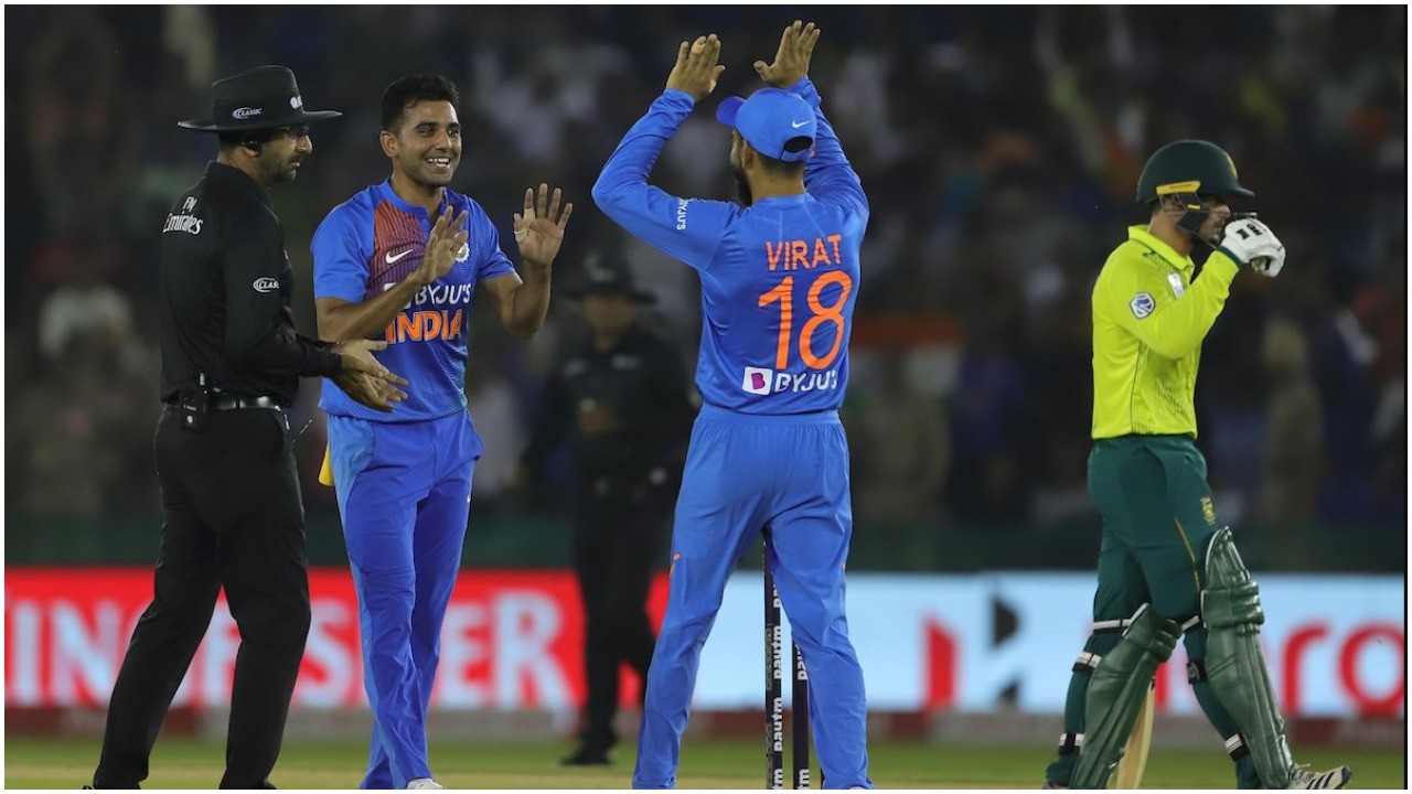 ടോസ് നേടിയ ഇന്ത്യ ബൗളിങ് തിരഞ്ഞെടുക്കുകയായിരുന്നു. ആദ്യം ബാറ്റ് ചെയ്ത ദക്ഷിണാഫ്രിക്കയ്ക്ക് വേണ്ടി ക്വിന്റൺ ഡി കോക്കും(52), ടെമ്പ ബാവും(49) മികച്ച ബാറ്റിങ് നടത്തിയ. ഇരുവരും ചേർന്ന് രണ്ടാം വിക്കറ്റിൽ 57 റൺസ് നേടി. എന്നാൽ പിന്നീട് ആർക്കും മികച്ച ബാറ്റിങ് നടത്താൻ കഴിഞ്ഞില്ല. ഇന്ത്യക്ക് വേണ്ടി ദീപക് ചഹാർ രണ്ട് വിക്കറ്റ് നേടി. മറുപടി ബാറ്റിങ്ങിനിറങ്ങിയ ഇന്ത്യക്ക് 12 റൺസ് എടുത്ത രോഹിത് ശർമയെ ആദ്യം തന്നെ നഷ്ട്ടമായി. പിന്നീടെത്തിയ കോഹിലി ധവാനുമായി ചേർന്ന് മികച്ച ബാറ്റിംഗ് ആണ് നടത്തിയത്. ഇരുവരും രണ്ടാം വിക്കറ്റിൽ 61 റൺസ് നേടി.റിഷഭ് പന്തിന് ഇത്തവണയും തിളങ്ങാൻ ആയില്ല. നാല് റൺസ് മാത്രമാണ് താരം നേടിയത്. പിന്നീടെത്തിയ ശ്രേയസ് അയ്യരുമായി ചേർന്ന് കൊഹ്‌ലി ഇന്ത്യക്ക് വിജയം സമ്മാനിച്ചു. മൂന്ന് മത്സരണങ്ങൾ ഉള്ള പരമ്പരയിലെ അവസാന മൽസരം സെപ്റ്റംബർ 22-ന് നടക്കും.