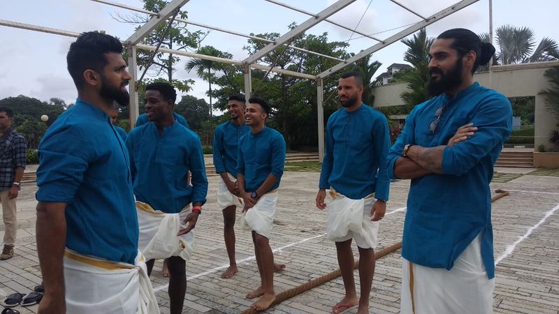കൊച്ചി: ഇന്ത്യൻ സൂപ്പർ ലീഗിന്റെ പുതിയ സീസൺ ആരംഭിക്കുന്നതിന് മുൻപേ യുഎഇയിലേക്ക് പ്രീ സീസൺ മത്സരങ്ങൾക്കായി പോയ ബ്ലാസ്റ്റേഴ്സ് താരങ്ങൾ മത്സരം ഉപേക്ഷിച്ച് തിരിച്ചെത്തി. നാട്ടിലെത്തിയ മഞ്ഞപ്പടയ്ക്ക് പൊന്നോണവിരുന്നൊരുക്കി ടീം മാനേജ്മെന്റ്. ഓണ നാളിൽ വടംവലി മത്സരവും ഓണസദ്യയുമെല്ലാം വിദേശ താരങ്ങൾ അടക്കമുള്ളവർക്ക് പുത്തൻ അനുഭൂതി പകർന്നു. ബ്ലാസ്റ്റേഴ്സ് ഓണാഘോഷചിത്രങ്ങൾ ഇതിനോടകം സോഷ്യൽ മീഡിയയിൽ വൈറലായിരിക്കുകയാണ്.
