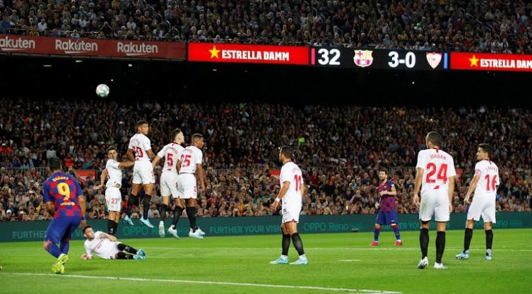 കഴിഞ്ഞ കളികളിൽ തങ്ങളുടെ സൂപ്പർ താരത്തിന്റെ അസാന്നിധ്യം ടീമിനെ ഒരു പരിധിവരെ ബാധിക്കാതെ കാത്ത സുവാരസിന്റെ ഗോളിൽ തുടങ്ങിയ ബാഴ്സ അവസാന വിസിൽ മുഴങ്ങുന്നതിനു മുന്നേ മൂന്നു തവണകൂടി സെവിയ്യയുടെ വല കുലുക്കിയിരുന്നു. സെവിയ്യ താരങ്ങൾ തീർത്ത പ്രതിരോധ മതിലിനു മുകളിലൂടെ ഗോൾ കീപ്പർ വാസ്‌ലൈക്കിനെ പരാജയപ്പെടുത്തിയ ഫ്രീ കിക്കിലൂടെ ടീമിന്റെ നാലാം ഗോൾ നേടിയ മെസ്സി തന്റെ ഫോമിനെപ്പറ്റി ചുരുക്കം ചില ആരാധകരുടെ മനസ്സിലെങ്കിലും നിലനിന്ന സംശയങ്ങൾക്കുള്ള മറുപടിയും നൽകി.