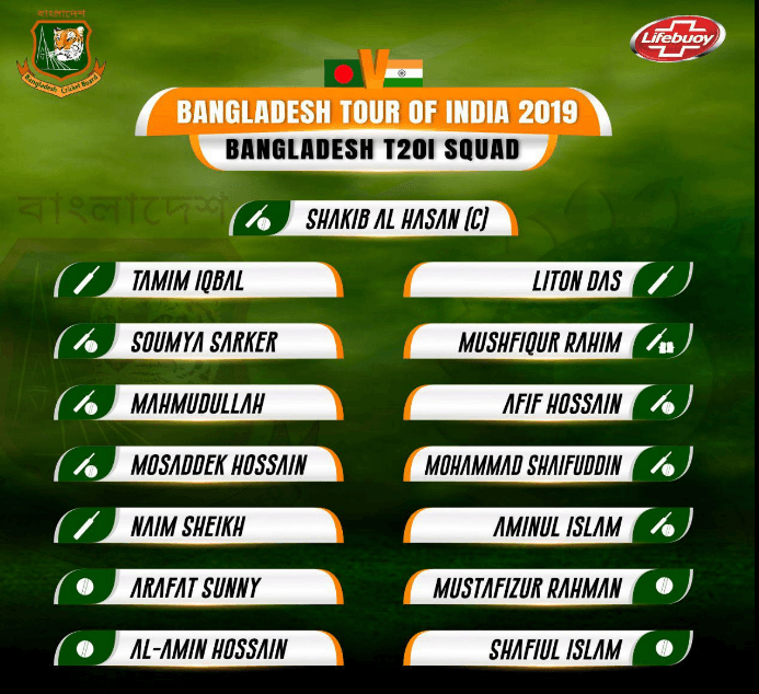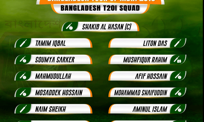 ഇന്ത്യ ബംഗ്ളദേശ് ടി20 പരമ്പരയ്ക്കുള്ള ബംഗ്ലാദേശ് ടീമിനെ പ്രഖ്യാപിച്ചു