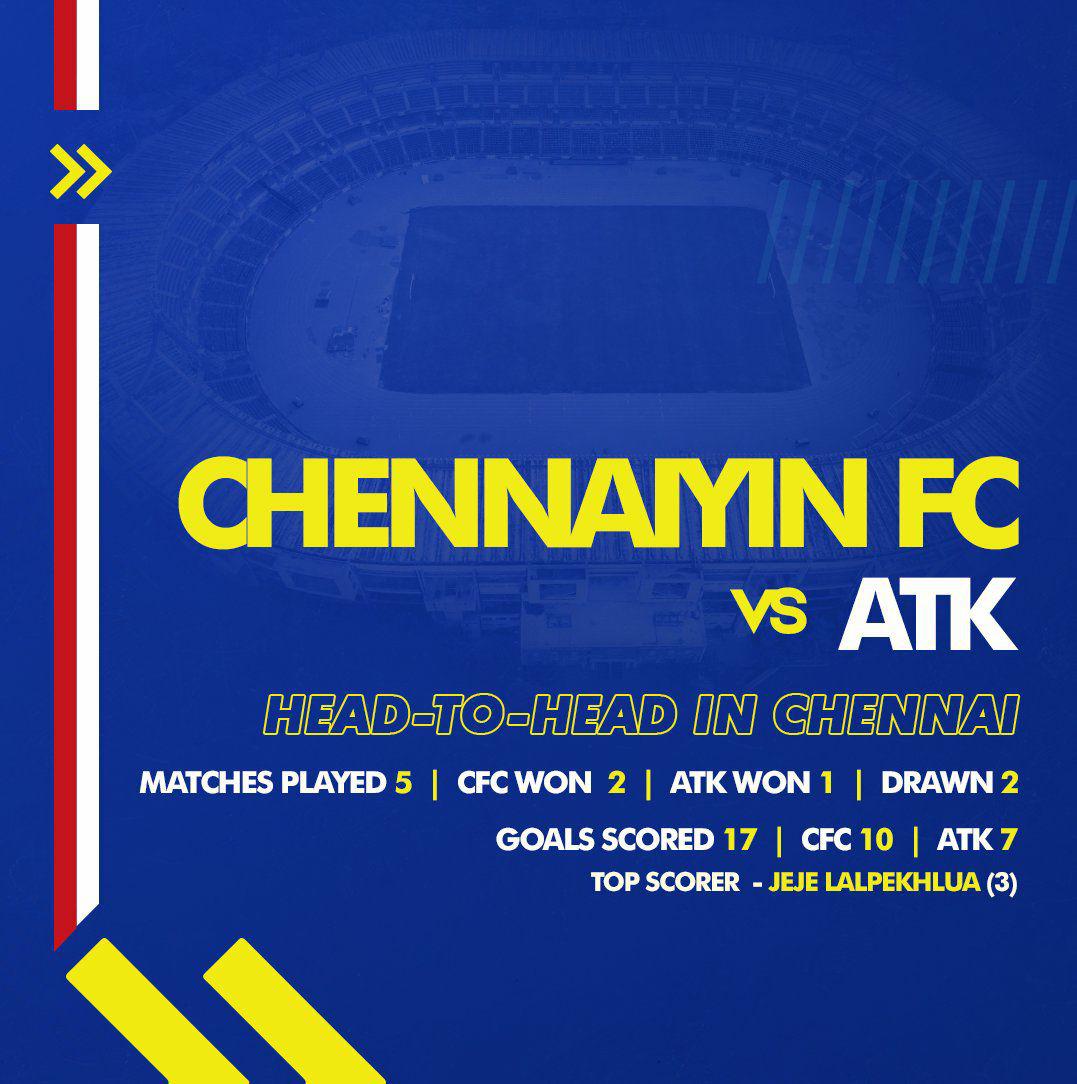 ആദ്യ മൽസരത്തിൽ ഗോവയോട് തോറ്റ ചെന്നൈ രണ്ടാം മത്സരത്തിൽ മുംബൈയെ സമനിലയിൽ തളക്കാൻ അവർക്ക് കഴിഞ്ഞു.ചെന്നൈക്ക് ഈ സീസണിൽ ഇതുവരെ ഗോളുകൾ ഒന്നും നേടിയിട്ടില്ല. ഇരു ടീമുകളും ഇതുവരെ 12 തവണ ഏറ്റുമുട്ടിയിട്ടുണ്ട്. അതിൽ എടികെ അഞ്ച് തവണ ജയിച്ചപ്പോൾ ചെന്നൈ മൂന്ന് കളികളിൽ മാത്രമാണ് ജയിച്ചിട്ടുള്ളത്.