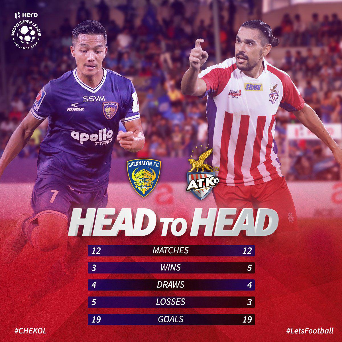 എടികെ ആദ്യ മൽസരത്തിൽ കേരളം ബ്ലാസ്റ്റേഴ്‌സിനോട് തോൽക്കുകയും രണ്ടാം മത്സരത്തിൽ ഹൈദരാബാദിനെ  അഞ്ച് ഗോളുകൾക്ക് തോൽപ്പിക്കുകയും ചെയ്തു. എന്നാൽ ഈ സീസണിൽ ചെന്നൈ ഇതുവരെ ജയിച്ചിട്ടില്ല. ഒരു മത്സരം തോൽക്കുകയും, ഒരെണ്ണം സമനിലയിലുമാണ് അവസാനിച്ചത്. ഇരു ടീമുകളും ഇതുവരെ 12 തവണ ഏറ്റുമുട്ടിയിട്ടുണ്ട്. അതിൽ എടികെ അഞ്ച് തവണ ജയിച്ചപ്പോൾ ചെന്നൈ മൂന്ന് കളികളിൽ മാത്രമാണ് ജയിച്ചിട്ടുള്ളത്.