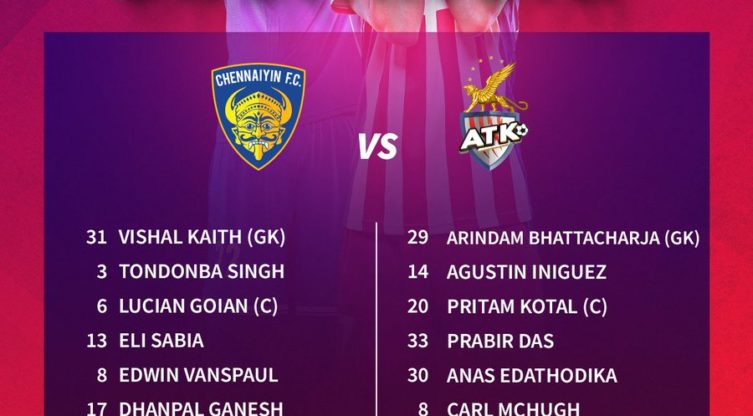 ഐ.എസ്‌.എല്‍: എടികെ ചെന്നൈയിന്‍ എഫ് സി ടീമുകളുടെ സ്റ്റാർട്ടിങ് ഇലവനെ പ്രഖ്യാപിച്ചു