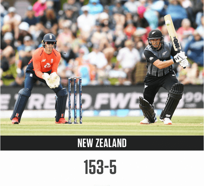 ന്യൂസിലൻഡ് ഇംഗ്ലണ്ട് ക്രിക്കറ്റ് പരമ്പരയിലെ ആദ്യ ടി20 മത്സരത്തിൽ ന്യൂസിലൻഡിനെതിരെ ഇംഗ്ലണ്ടിന് 154 റൺസ് വിജയലക്ഷ്യം. ടോസ് നേടിയ ബൗളിംഗ് തിരഞ്ഞെടുത്ത ഇംഗ്ലണ്ടിനെതിരെ ന്യൂസിലൻഡ് നിശ്‌ചിത 20 ഓവറിൽ അഞ്ച് വിക്കറ്റ് നഷ്ടത്തിൽ 153 റൺസ് നേടി. ടിം സീഫെർട്ട്(32), റോസ് ടെയ്‌ലർ(44), ഡാരിൽ മിച്ചൽ(30), കോളിൻ മൺറോ(21) എന്നിവരുടെ ബാറ്റിംഗ് മികവിലാണ് ന്യൂസിലൻഡ് 153 റൺസ് നേടിയത്. ക്രിസ് ജോർദാൻ ഇംഗ്ളണ്ടിന് വേണ്ടി രണ്ട് വിക്കറ്റ് നേടി.