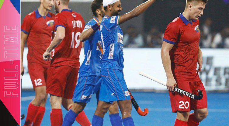 മത്സരം തുടങ്ങി അഞ്ചാം മിനിറ്റിൽ ഇന്ത്യ ആദ്യ ഗോൾ നേടി. എന്നാൽ പതിനേഴാം മിനിറ്റിൽ റഷ്യ മറുപടി ഗോൾ നൽകി സ്കോർ സമനിലയിൽ എത്തിച്ചു. ഏഴ് മിനിറ്റിനുള്ളിൽ ഇന്ത്യ രണ്ടാം ഗോൾ നേടി വീണ്ടും ലീഡ് ഉയർത്തി. ആദ്യ പകുതി 2-1 എന്ന നിലയിൽ അവസാനിച്ചു. രണ്ടാം പകുതിയിൽ ഇന്ത്യ മികച്ച പ്രകടനമാണ് നടത്തിയത്. 48,53 എന്നീ മിനിറ്റുകളിൽ ഇന്ത്യ ബാക്കി രണ്ട് ഗോളുകൾ കൂടി നേടി. സെമെൻ മാറ്റ്കോവ്സ്കിയുടെ പെനാൽറ്റി കോർണർ പരിവർത്തനത്തിലൂടെ റഷ്യ നിർണായക രണ്ടാം ഗോൾ നേടി.