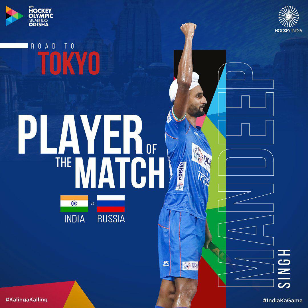 ഭുവനേശ്വര്: ഒളിമ്ബിക് യോഗ്യതാ റൗണ്ടില് ഇന്ത്യയുടെ പുരുഷ ടീമിനും ജയം. ഇന്നലെ നടന്ന മത്സരത്തിൽ അവർ റഷ്യയെ ആണ് തോൽപ്പിച്ചത്. വനിത ടീമും ഇന്നലെ വിജയിച്ചിരുന്നു.രണ്ടിനെതിരെ നാല് ഗോളുകൾക്കാണ് ഇന്ത്യ തോൽപ്പിച്ചത്. മന്ദീപ് സിങ്,മന്പ്രീത്സിങ് , എസ്.വി. സുനിൽ എന്നിവരാണ് ഇന്ത്യക്ക് വേണ്ടി ഗോളുകൾ നേടിയത്. മന്ദീപ് സിങ് രണ്ട് ഗോളുകൾ നേടി. ലോക റാങ്കിങ്ങിൽ ഇരുപത്തിരണ്ടാം സ്ഥാനത്തുള്ള റഷ്യ ഇന്ത്യക്കെതിരെ മികച്ച പ്രകടനമാണ് നടത്തിയത്.