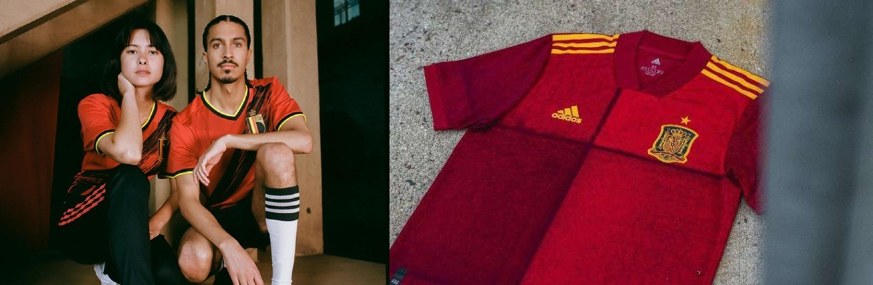 വെള്ളയും കറുപ്പുമുള്ള ഡിസൈനിലാണ് ജർമനിയുടെ പുതിയ ജേഴ്സി. അഡിഡാസ് ജർമ്മൻ വരകൾ നിലനിർത്തിയിട്ടുണ്ടെങ്കിലും കൈകൊണ്ട് വരച്ച പിൻസ്ട്രൈപ്പുകളുടെ ശൈലിയിൽ അവ പുനർനിർമ്മിച്ചിരിക്കുകായണ്. മറ്റിടങ്ങളിൽ, കറുപ്പ്, ചുവപ്പ്, സ്വർണ്ണ പതാക നിറങ്ങൾ ആണ് ഉള്ളത്. പതിവ്പോലെ ചുവപ്പ് നിറമുള്ള ഡിസൈനിലാണ് സ്‌പെയിനിൻറെ ജേഴ്‌സി പുറത്തിറങ്ങിയിരിക്കുന്നത്. സ്‌പെയിനിന്റെ ജേഴ്‌സിയുടെ കഴുത്തിൽ ‘1920’ എന്ന് എഴുതിയിട്ടുണ്ട്. ആദ്യത്തെ ദേശീയ ടീം ജേഴ്സിയുടെ നൂറാം വാർഷികം ഒര്മിപ്പിച്ചുകൊണ്ടുള്ളതാണ്. ബെൽജിയത്തിന്റെ ഏറ്റവും പുതിയ കിറ്റ് രാജ്യത്തിന്റെ പതാകയുടെ ശക്തിയും, പുരോഗമനപരവുമായ നിറങ്ങൾ ആഘോഷിക്കുന്നു, ഗ്രാഫിക് ‘ബി’ എന്ന അക്ഷരം ജേഴ്‌സിയിൽ കാണാം.