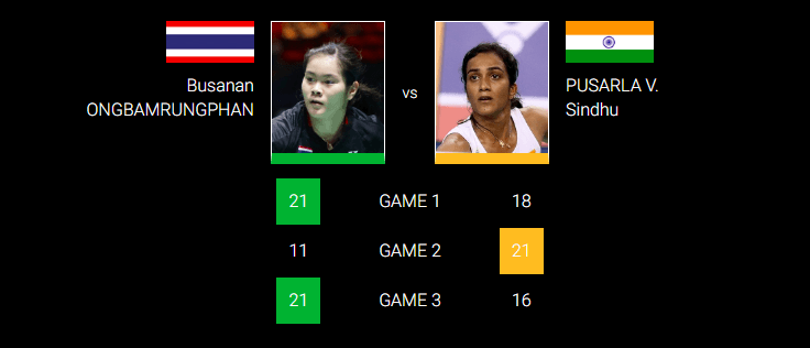 ഹോങ്കോങ് ഓപ്പണ്‍ ബാഡ്മിന്റണ്‍ ചാമ്ബ്യന്‍ഷിപ്പില്‍ നിന്ന് ഇന്ത്യൻ വനിത താരം പി വി സിന്ധു പുറത്തായി. വനിത സിംഗിൾസിൽ ലോ​​ക​​ജേ​​താ​​വാ​​യ പി.​​വി. സി​​ന്ധു താ​​യ്‌ലന്‍​​ഡി​​ന്‍റെ ബു​​സ​​ന​​നോടാണ് തോറ്റത്. ലോക പതിനെട്ടാം നമ്പർ താരത്തോടാണ് പി വി സിന്ധു തോറ്റത്. മൂന്ന് സീറ്റുകൾ നീണ്ട മത്സരത്തിലാണ് സിന്ധു അടിയറവ് പറഞ്ഞത്.ഒരു മണിക്കൂർ 9 മിനിറ്റ് നീണ്ട്  നിന്ന മത്സരത്തിൽ ആദ്യ ഗെയിം തോറ്റ സിന്ധു രണ്ടാം ഗെയിമിൽ തകർപ്പൻ തിരിച്ചുവരവ് നടത്തി ജയിക്കുകയായിരുന്നു. എന്നാൽ മൂന്നാം ഗെയിമിൽ തരാം പൊരുതിയെങ്കിലും അവസാന നിമിഷം പോയിന്റുകൾ നേടാൻ കഴിയാതെ തോൽവിയേറ്റ് വാങ്ങുകയായിരുന്നു.