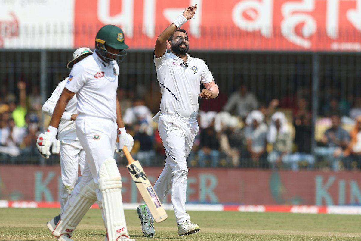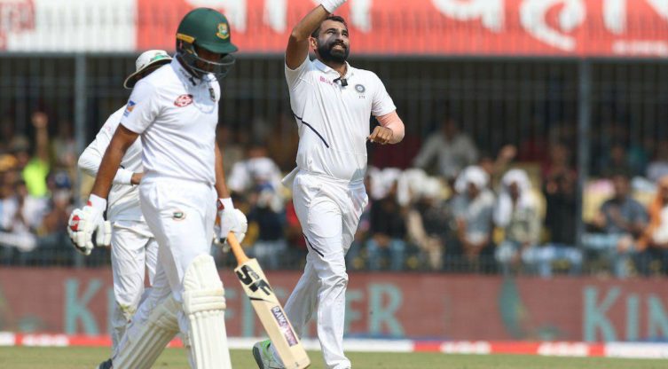 ഇമ്രുല് കയേസ് (6), ക്യാപ്റ്റന് മോമിനുല് ഹഖ് (7), മുഹമ്മദ് മിഥുന് (18),ഷാഡ്മാൻ ഇസ്ലാം(6), മഹ്മൂദുള്ള(15) എന്നിവരുടെ വിക്കറ്റ് ആണ് ബംഗ്ലാദേശിന് നഷ്ടമായത്. ഇന്ത്യക്ക് വേണ്ടി ഓപ്പണർ മയങ്ക അഗർവാൾ ഇരട്ട ശതകം നേടി. രണ്ടാം തവണയാണ് താരം ഇരട്ട ശതകം നേടുന്നത്.86-1 എന്ന നിലയിൽ ഇന്നലെ ബാറ്റിങ്ങ് ആരംഭിച്ച ഇന്ത്യക്ക് ആദ്യ വിക്കറ്റ് 105 റൺസിൽ നഷ്ട്ടമായി. പിന്നീടെത്തിയ കൊഹ്ലി റൺസ് ഒന്നും നേടാതെ പുറത്തായി. പിന്നീട് അഗർവാളും, രഹാനെയും ചേർന്ന് മികച്ച ഒരു കൂട്ടുകെട്ടാണ് പടുതിയർത്തിയത്. ഇരുവരും ചേർന്ന് നാലാം വിക്കറ്റിൽ 190 റൺസാണ് നേടിയത്. പിന്നീട് ജഡേജ മികച്ച ബാറ്റിങ്ങ് നടത്തി. 54 റണ്സെടുത്ത പൂജാരയെയും അബു ജായെദാണ് പുറത്താക്കിയത്, പിന്നാലെയെത്തിയ കോഹിലി രണ്ട് പന്തിനുള്ളിൽ ജായെദ് പുറത്താക്കി. അബു ജായെദ് നാല് വിക്കറ്റ് നേടി.
