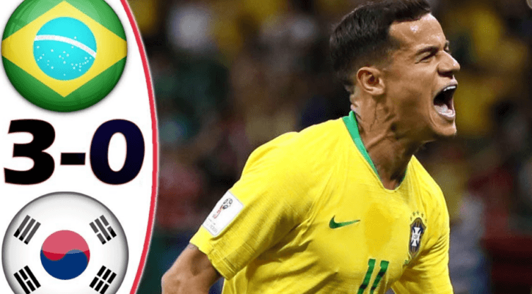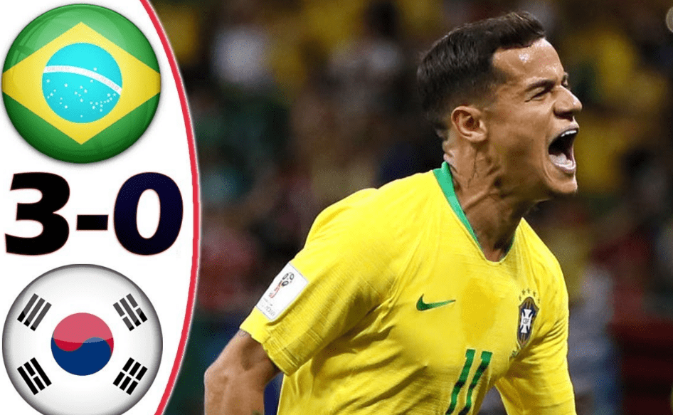 മത്സരം തുടങ്ങി ഒൻപതാം മിനിറ്റിൽ പക്യേറ്റ ആദ്യ ഗോൾ നേടി. പിന്നീട് മുപ്പത്തിയാറാം മിനിറ്റിൽ കുട്ടീഞ്ഞോയുടെ കിടിലൻ ഫ്രീകിക്ക് ഗോളില് ബ്രസീൽ 2-0 ലീഡ് നേടി. രണ്ടാം പകുതിയിൽ അറുപതാം മിനിറ്റിൽ ഡാനിയേലോ മൂന്നാം ഗോളും നേടി. കൊറിയൻ താരങ്ങൾ മിൿച പ്രകടനമാണ് നടത്തിയത്. എന്നാൽ ഗോൾ നേടുന്നതിൽ അവർ പരാജയപ്പെട്ടു.