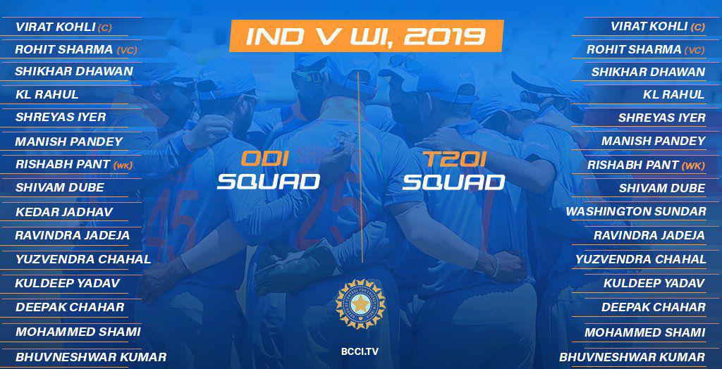 ഇന്ത്യന് ഏകദിന ടീം: വിരാട് കോഹ്ലി, രോഹിത് ശര്മ്മ, ശിഖര് ധവാന്, ലോകേഷ് രാഹുല്, ശ്രേയസ് അയ്യര്, മനീഷ് പാണ്ഡെ, ഋഷഭ് പന്ത്, ശിവം ദുബെ, കേദാര് ജാദവ്, രവീന്ദ്ര ജഡേജ, യുസ്വേന്ദ്ര ചഹല്, കുല്ദീപ് യാദവ്, ദീപക് ചാഹര്, മുഹമ്മദ് ഷമി, ഭുവനേശ്വര് കുമാര്.
