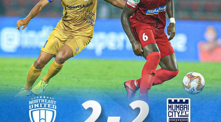 ഐഎസ്എല്: നോര്ത്ത് ഈസ്റ്റ് യുണൈറ്റഡ് മുംബൈ സിറ്റി എഫ് സി മൽസരം സമനിലയിൽ അവസാനിച്ചു