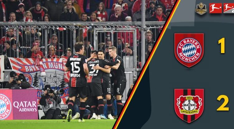 മത്സരം തുടങ്ങി പത്താം മിനിറ്റിൽ ആദ്യ ഗോൾ ബയര് ലെവര്കൂസ നേടി. സമനില ഗോൾ നേടാൻ ബയേൺ ശ്രമിച്ചെങ്കിലും മുപ്പത്തിനാലാം മിനിറ്റിലാണ്സമനില ഗോൾ പിറന്നത്. മുള്ളര് ആണ് അവർക്ക് വേണ്ടി ഗോൾ നേടിയത്. എന്നാൽ തൊട്ടടുത്ത മിനിറ്റിൽ ബയര് ലെവര്കൂസ രണ്ടാം ഗോൾ നേടി ലീഡ് ഉയർത്തി. പിന്നീട് ബയര് ലെവര്കൂസയുടെ ജോനാഥൻ ചുവപ്പ് കാർഡ് കിട്ടി 81 ആം മിനിറ്റിൽ പുറത്തായി. 10 പേരുമായി കളിച്ച ബയര് ലെവര്കൂസയക്കെതിരെ ബയേണ് മ്യൂണിക്കിന് സമനില ഗോൾ നേടാൻ കഴിഞ്ഞില്ല. 13 കളികളിൽ നിന്ന് 24 പോയിന്റുമായി ബയേണ് നാലാം സ്ഥാനത്താണ്. ജയത്തോടെ 13 കളികൾ 22 പോയിന്റുമായി ബയര് ഏഴാം സ്ഥാനത്താണ്.
