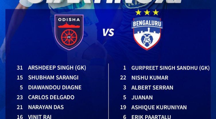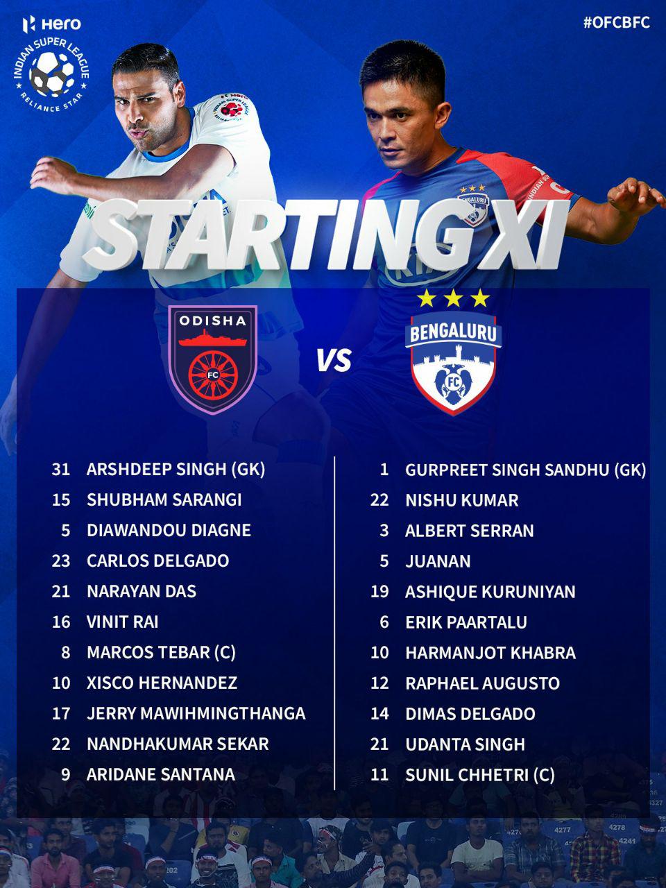 ഐഎസ്എൽ : ബംഗളൂരു എഫ്സി ഒഡീഷ ടീമുകളുടെ സ്റ്റാർട്ടിങ് ഇലവനെ പ്രഖ്യാപിച്ചു