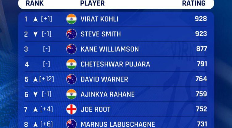 സ്മിത്തിനെ പിന്നിലാക്കി ടെസ്റ്റ് ബാറ്റിംഗ് റാങ്കിങ്ങില് കോഹിലി ഒന്നാമത്