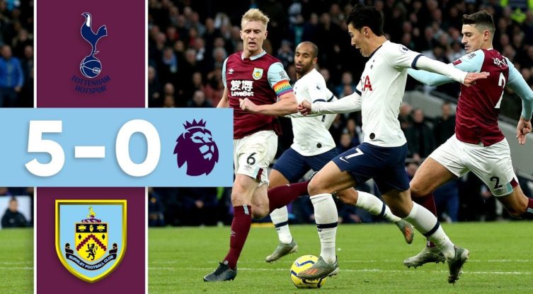പ്രീമിയർ ലീഗിൽ ഇന്നലെ നടന്ന ടോട്ടൻഹാം-ബേണ്ലി മത്സരത്തിൽ ടോട്ടൻഹാമിന് തകർപ്പൻ ജയം. എതിരില്ലാത്ത അഞ്ച് ഗോളുകൾക്കാണ് അവർ ജയിച്ചത്. തകർപ്പൻ പ്രകടനമാണ് ടോട്ടൻഹാം നടത്തിയത്.ഹാരി കെയ്ന്,ലൂക്കാസ് മോറാ, സണ് ഹേങ് മിന്,സിസോക്കോ എന്നിവരാണ് ടോട്ടൻഹാമിന് വേണ്ടി ഗോളുകൾ നേടിയത്. ഹാരി രണ്ട് ഗോളുകൾ നേടി. തുടക്കം മുതൽ ആക്രമിച്ച് കളിച്ച ടോട്ടൻഹാം അനായാസ ജയമാണ് നേടിയത്. തികച്ചും ഏകപക്ഷീയമായ മത്സരമാണ് ഇന്നലെ നടന്നത്. ജയത്തോടെ പോയിന്റ് നിലയിൽ അവർ ആറാം സ്ഥാനത്താണ്.