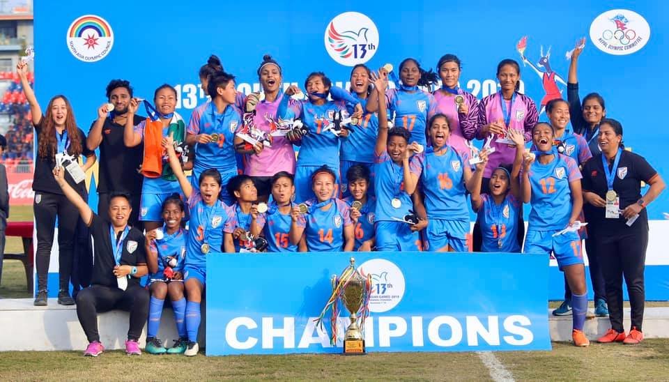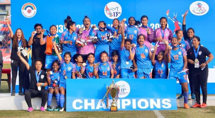 വനിത ഫുട്ബോള് ഫൈനൽ മത്സരത്തിൽ നേപ്പാളിനെ തോൽപ്പിച്ചാണ് ഇന്ത്യ സ്വർണം നേടിയത്. എതിരില്ലാത്ത രണ്ട് ഗോളുകൾക്കാണ് ഇന്ത്യ വിജയം സ്വന്തമാക്കിയത്. ഇന്ത്യക്ക് വേണ്ടി രണ്ട് ഗോളുകളും നേടിയത് ബാലാദേവിയാണ്.മെഡൽ വേട്ടയിൽ ഇന്ത്യ ആണ് ഒന്നാമത്.ഇന്ത്യ ഗ്രൂപ്പ് ചാമ്ബ്യന്മാരായാണ് ഫൈനലിൽ എത്തിയത്. മൂന്ന് മത്സരങ്ങളിലും ജയിച്ച ഇന്ത്യ ഗ്രൂപ്പ് മത്സരത്തിലും നേപ്പാളിനെ തോൽപ്പിച്ചു. ഒരു കളിയും തോൽക്കാതെയാണ് ഇന്ത്യ സ്വർണം സ്വന്തമാക്കിയത്. കൂടാതെ ഒരു ഗോൾ പോലും വഴങ്ങാതെ ഇന്ത്യൻ വനിതകൾ 14 ഗോളുകജാല ആണ് നേടിയത്, ആദ്യ മത്സരത്തിൽ മാല്ഡീവ്സിനെയും, ശ്രീലങ്കയെയും ആണ് ഇന്ത്യ തോൽപ്പിച്ചത്.