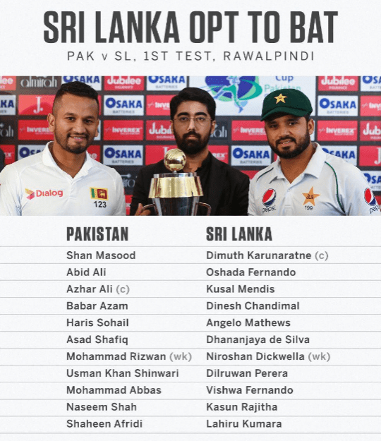 പാകിസ്ഥാൻ ശ്രീലങ്ക ടെസ്റ്റ്: ടോസ് നേടിയ ശ്രീലങ്ക ബാറ്റിങ് തിരഞ്ഞെടുത്തു