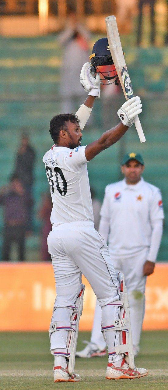 555-3 എന്ന നിലയിലാണ് പാകിസ്ഥാൻ രണ്ടാം ഇന്നിങ്സ് അവസാനിപ്പിച്ചത്. തകർപ്പൻ ബാറ്റിങ്ങ് ആണ് പാകിസ്ഥാൻ നടത്തിയത്. ഇന്നലെ 395/2 എന്ന നിലയിൽ ബാറ്റിങ്ങ് ആരംഭിച്ച പാകിസ്ഥാൻ പൂർണ ആധിപത്യം ആണ് ഇന്നലെയും നേടിയത്. ഒരു വിക്കറ്റ് മാത്രമാണ് ശ്രീലങ്കൻ ബൗളർമാർക്ക് ഇന്നലെ നേടാനായത്.ഒന്നാം ഇന്നിങ്ങ്സിൽ 190 റൺസിന് പുറത്തായ പാകിസ്ഥാൻ രണ്ടാം ഇന്നിങ്ങ്സിൽ മികച്ച ബാറ്റിങ്ങ് ആണ് നടത്തിയത്.രണ്ട് പാകിസ്ഥാൻ താരങ്ങൾ കൂടി സെഞ്ചുറി നേടി. അസർ അലിയും(118),ബാബർ അസമും(100) ആണ് ഇന്ന് സെഞ്ചുറി നേടിയത്. മൂന്നാം വിക്കറ്റിൽ ഇരുവരും ചേർന്ന് 148 റൺസ് ആണ് നേടിയത്. രണ്ടാം ഇന്നിങ്ങ്സിൽ നാല് പാകിസ്ഥാൻ താരങ്ങൾ ആണ് സെഞ്ചുറി നേടിയത് .