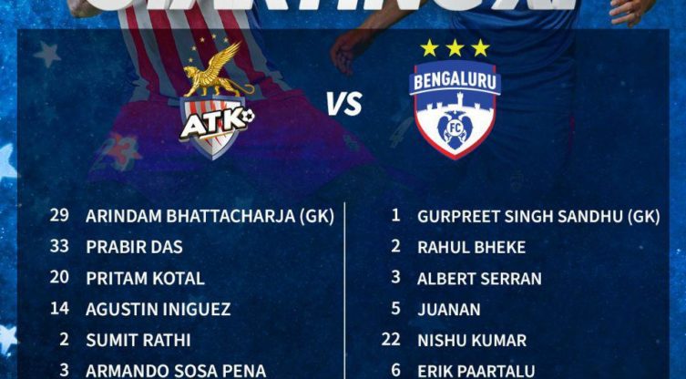 ഐഎസ്എൽ: ബംഗളൂരു എഫ് സി എടികെ ടീമുകളുടെ സ്റ്റാർട്ടിങ് ഇലവനെ പ്രഖ്യാപിച്ചു