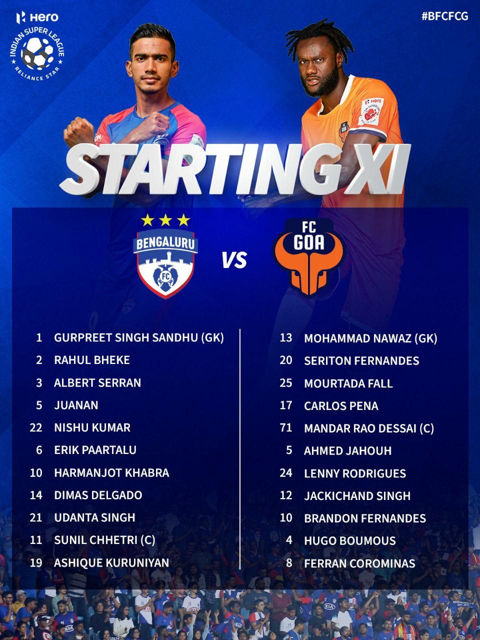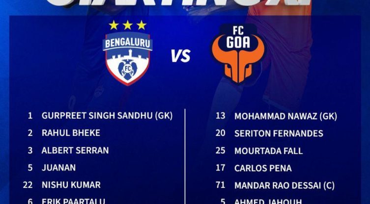 ഐഎസ്‌എല്‍: ബെംഗളൂരു എഫ് സി ഇന്ന് എഫ് സി ഗോവ ടീമുകളുടെ സ്‌റ്റാർട്ടിങ് ഇലവനെ പ്രഖ്യാപിച്ചു