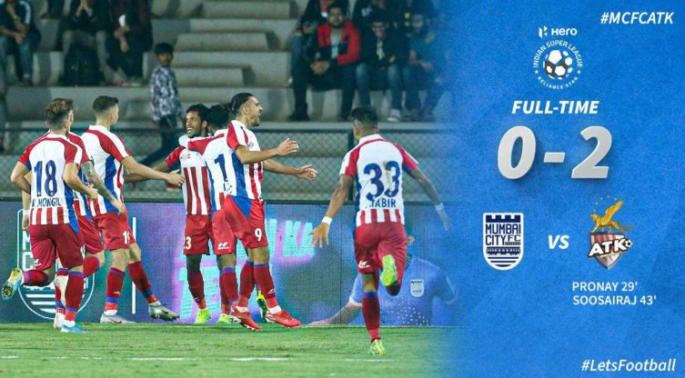 ഇന്നലെ നടന്ന മത്സരത്തിൽ മുംബൈക്ക് നിരവധി അവസരങ്ങൾ ലഭിച്ചെങ്കിലും അതൊന്നും ഗോളാക്കി മട്ടൻ അവർക്കായില്ല. ആദ്യ പകുതിയിൽ മുപ്പതാം മിനിറ്റിൽ പ്രണോയ് ഹാള്‍ദറിലൂടെ കൊൽക്കത്ത ആദ്യ ഗോൾ നേടി. പിന്നീട് 13 മിനിറ്റുകൾക്ക് ശേഷം എടികെ രണ്ടാം ഗോൾ നേടി. സബ്ബായി ഇറങ്ങിയ സൂസൈരാജ് ആണ് രണ്ടാം ഗോൾ നേടിയത്. നിലവിൽ 11 കളികളിൽ 6 ജയവുമായി 21 പോയിന്റ് ആണ് എടികെയ്ക്ക് ഉള്ളത്.