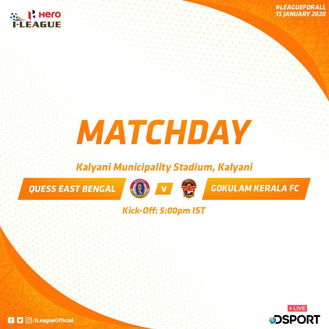 ഐ ലീഗിൽ ഇന്ന് ഗോകുലം കേരള എഫ് സി ഈസ്റ്റ് ബംഗാളിനെ നേരിടും.ഇന്ന് വൈകിട്ട് അഞ്ച് മണികകണ് മൽസരം ആരംഭിക്കുന്നത്. കല്യാണി മുനിസിപ്പൽ സ്റ്റേഡിയത്തിൽ ആണ് മൽസരം. രണ്ട് ടീമുകളുടെയും ആറാം മൽസരമാണ് ഇന്ന് നടക്കുന്നത്. ലീഗിൽ നിലനിൽക്കാൻ രണ്ട് ടീമുകൾക്കും ഇന്ന് ജയം അനിവാര്യമാണ്. കഴിഞ്ഞ മൽസരത്തിൽ ഗോവയോട് തോറ്റ ബംഗാളിന് ഇന്ന് ജയം അനിവാര്യമാണ്.