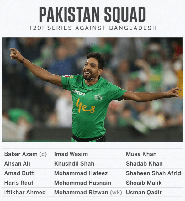 ബംഗ്ലാദേശിനെതിരെയുള്ള ടി20 മത്സരത്തിനുള്ള പാകിസ്ഥാൻ ടീമിനെ പ്രഖ്യാപിച്ചു