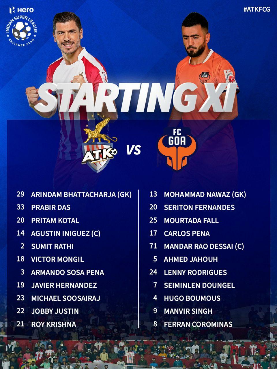 ഐഎസ്എൽ: എടികെ എഫ് സി ഗോവ ടീമുകളുടെ സ്റ്റാർട്ടിങ് ഇലവനെ പ്രഖ്യാപിച്ചു
