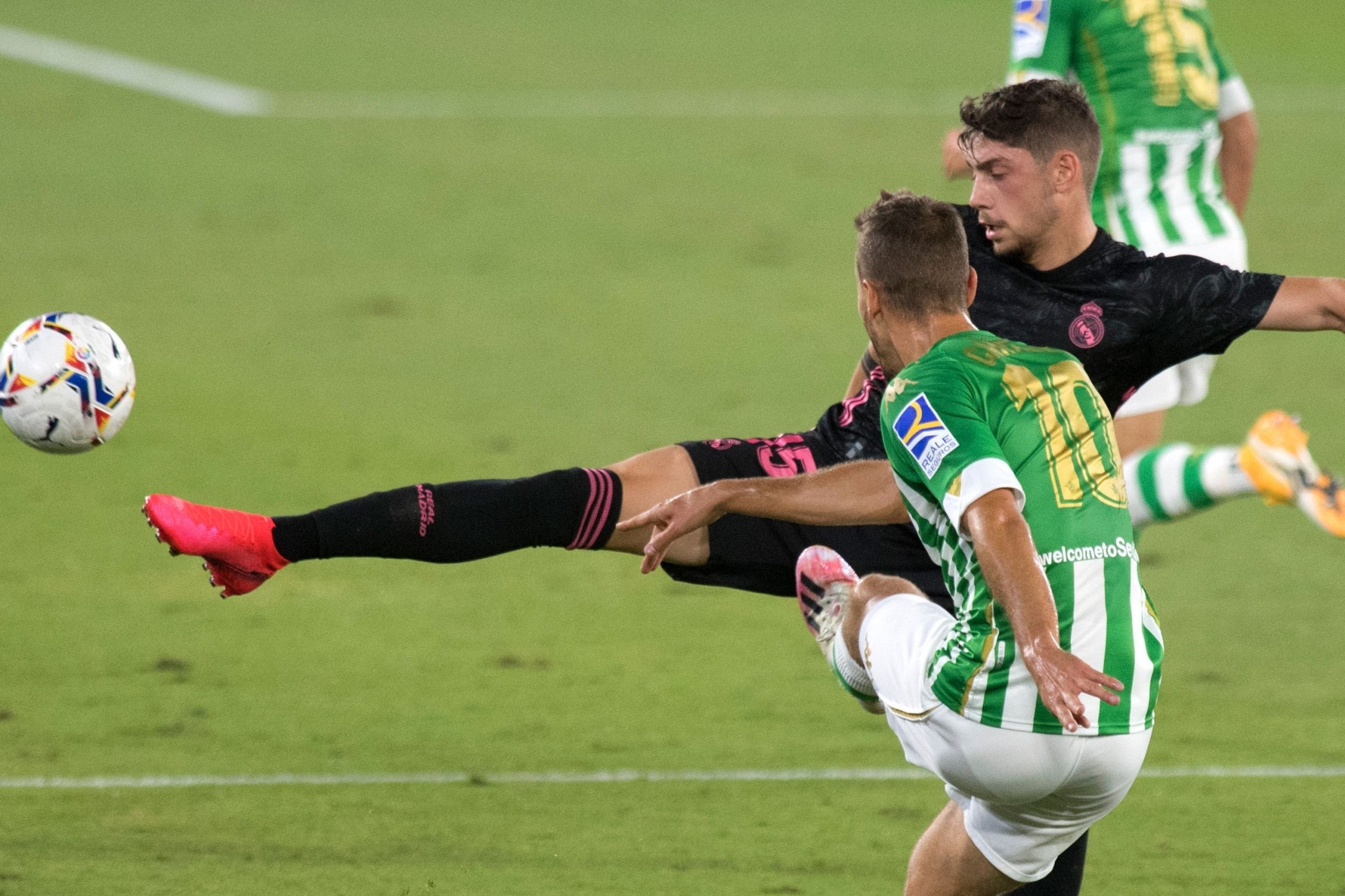 റയല് ബെറ്റിസിനെതിരെയുള്ള മല്സരത്തില് വിജയം നേടി റയല് മാഡ്രിഡ്.ഈ സീസണില് തങ്ങളുടെ ആദ്യ വിജയം റയല് മാഡ്രിഡ് നേടിയത് രണ്ടിനെതിരെ മൂന്ന് ഗോളുകള്ക്കാണ്.റയലിന് വേണ്ടി ഫെഡെ വാല്വറഡേ,സെര്ജിയോ റാമോസ്,ഫെഡെഴ്സണ്(ഓണ് ഗോള്) എന്നിവര് ഗോള് നേടിയപ്പോള് ബെറ്റിസിന് വേണ്ടി ഐസ മാണ്ടി,വില്യം കര്വാള്ഹോ എന്നിവര് ആണ് ഗോള് നേടിയത്.