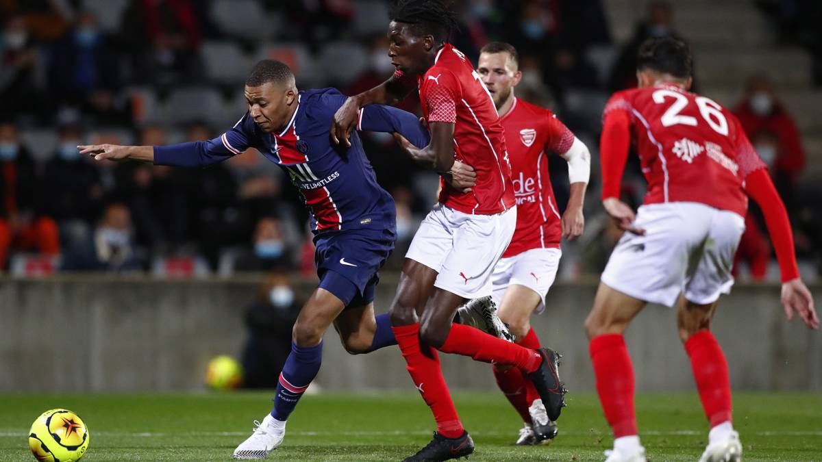 റാഫിൻഹയ്ക്കെതിരായ അപകടകരമായ വെല്ലുവിളിക്ക് ലാൻഡ്രെ റെഡ് കാര്ഡ് കണ്ട് മടങ്ങി.32 മിനിറ്റിനുള്ളിൽ എംബപ്പേ ഡെഡ്ലോക്ക് തകർത്തു, കീപ്പർ ബാപ്റ്റിസ്റ്റ് റെയ്നെറ്റിനേകാഴ്ച്ചക്കാരന് ആക്കി കൊണ്ട് ആണ് അദ്ദേഹം ആദ്യ ഗോള് നേടിയത്.പിന്നീട് അദ്ദേഹം 83 ആം മിനുട്ടില് രണ്ടാം ഗോള് നേടി വീണ്ടും പിഎസ്ജിയുടെ വിജയനായകന് ആയി അദ്ദേഹം.