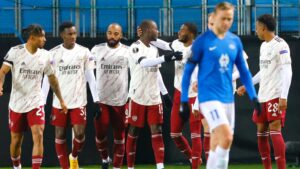 വ്യാഴാഴ്ച രാത്രി നോർവേയിൽ നടന്ന ഗ്രൂപ്പ് ബി യൂറോപ്പ ലീഗ് മത്സരത്തിൽ ആഴ്സണൽ മോൾഡെയെ 3-0 ന് പരാജയപ്പെടുത്തി നോക്കൗട്ട്  റൌണ്ടുകളിൽ ഇടം നേടി.സ്‌കോറില്ലാത്ത ആദ്യ പകുതി അവസാനിച്ചപ്പോള്‍  ഇരുടീമുകളും  കുറച്ച് അവസരങ്ങള്‍ സൃഷ്ട്ടിച്ചിരുന്നു.മോൾഡെയുടെ ഷെരീഫ് സിനിയാൻ 45 മിനിറ്റില്‍ ഓപ്പണിംഗ് ഗോള്‍ നേടാനുള്ള മികച്ച അവസരം പാഴാക്കി.