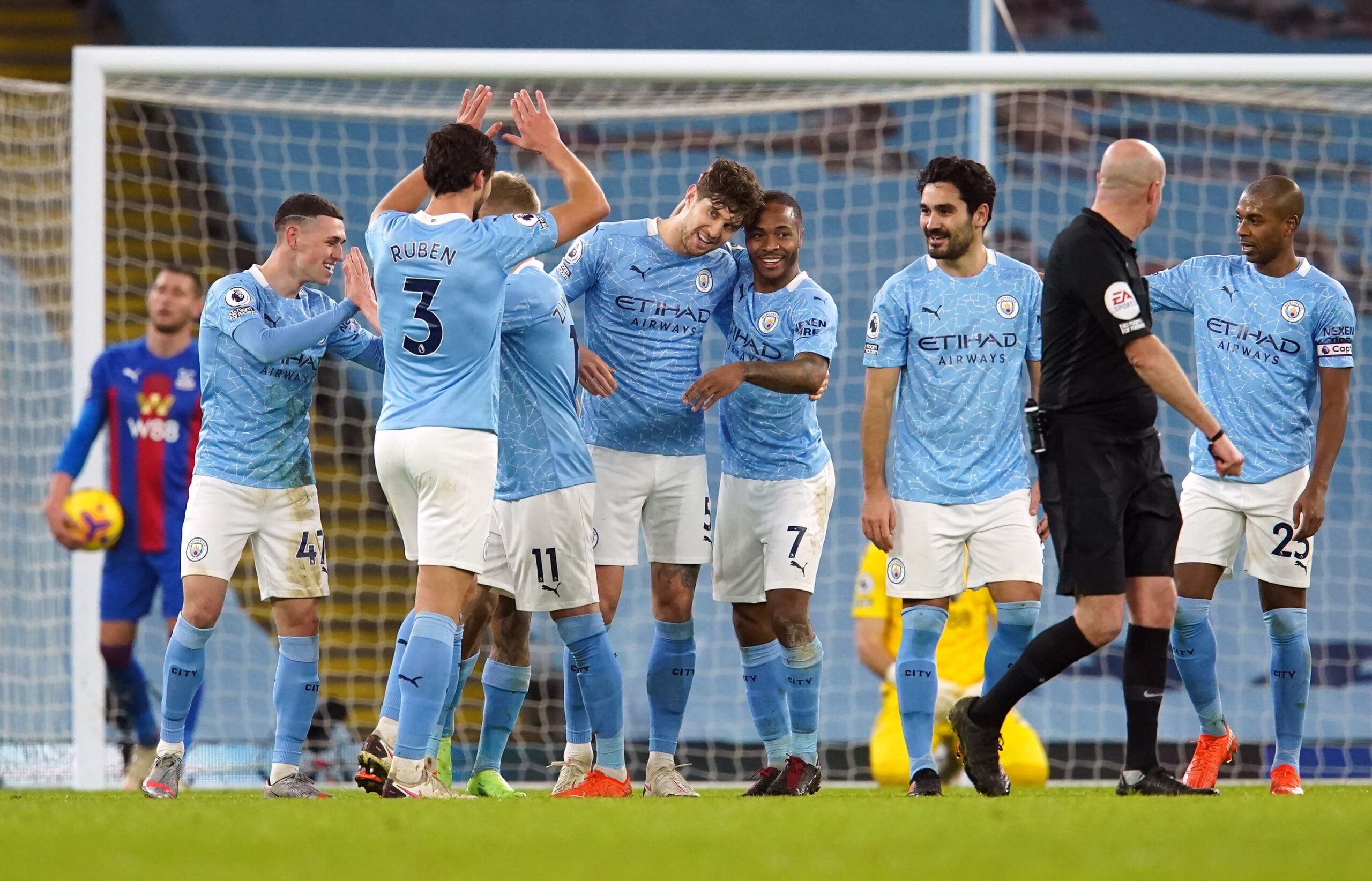 സിറ്റിക്കുവേണ്ടി 100 പ്രീമിയർ ലീഗ് മത്സരങ്ങൾ പൂര്ത്തിയാക്കിയ സ്റ്റോൺസ് 26-ാം മിനിറ്റിൽ കെവിൻ ഡി ബ്രൂയിന്റെ ഒരു മികച്ച ക്രോസില് ഗോള് നേടിയ ശേഷം ക്ലബ്ബിനായി തന്റെ ആദ്യ ലീഗ് ഗോൾ നേടി.പിന്നീടുള്ള കൃത്യമായ ഇടവേളകളില് ഇക്കേ ഗുണ്ഡോഗന്,റഹീം സ്റ്റര്ലിങ് എന്നിവരും സ്കോര് ബോര്ഡില് ഇടം നേടി.