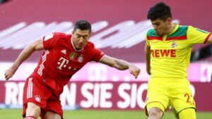 ബുണ്ടസ്ലിഗ ടോപ് സ്കോറർ ആയ  റോബർട്ട് ലെവാൻഡോവ്സ്കി, സെർജ് ഗ്നാബ്രി എന്നിവർ രണ്ടുതവണ ഗോള്‍ നേടിയപ്പോള്‍ കഴിഞ്ഞ തവണ ഫ്രാങ്ക് ഫൂട്ടുമായി തോല്‍വി നേരിട്ട  ബയേൺ മ്യൂണിക്ക്  കൊളോണിനെ 5-1 ന് തകർത്തു.ഇന്നലത്തെ മല്‍സരത്തില്‍ ആര്‍ബി ലെപ്സിഗ് ജയം നേടിയത്തോടെ വീണ്ടും മ്യൂണിക്കും ലെപ്സിഗും തമിലുള്ള പോയിന്‍റ് വിത്യാസം  രണ്ടായി കുറഞ്ഞു.ശേഷിക്കുന്ന മ്യൂണിക്ക് ഗോള്‍ നേടിയത് ഏറിക്ക് മാക്സിം ചൌപ്പോ മോട്ടിങ് ആയിരുന്നു.
