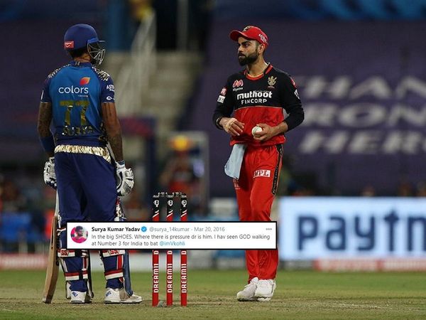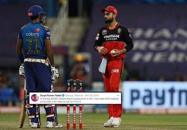 ഈ അടുത്ത് നടത്തിയ അഭിമുഘത്തില് താരം ഇന്ത്യന് ക്യാപ്റ്റന് വിരാട്ട് കൊഹ്ലിയുമായി പിച്ചില് ഏറ്റുമുട്ടിയ സംഭവം മുംബൈ ഇന്ത്യൻസ് ഇൻസ്റ്റാഗ്രാം ഹാൻഡിൽ ഒരു തത്സമയ ചാറ്റിനിടെ വെളിപ്പെടുത്തി.”തനിക്കെതിരെ ബാറ്റ് ചെയ്യുന്ന ഏതൊരു ബാറ്റ്സ്മാനേയും അദ്ദേഹം നിരന്തരം പരീക്ഷിച്ച് കൊണ്ടിരിക്കും.അദ്ദേഹം എന്നെ സ്ലെഡ് ചെയ്തതിൽ ഞാൻ സന്തുഷ്ടനാണ്.ഞാൻ ബാറ്റ് ചെയ്താൽ ഞങ്ങൾ മത്സരത്തിൽ വിജയിക്കുമെന്നും കൊഹ്ലിക്ക് അറിയാം ആയിരുന്നു.”യാദവ് വെളിപ്പെടുത്തി.