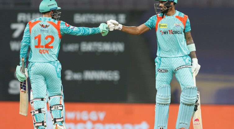 തുടക്കം മുതലെ അടിച്ചു കളിച്ച ഡികോക്കിന്റെ മാസ്മരിക പ്രകടമനമാണ് നിർണായക മത്സരത്തിൽ മികച്ച സ്കോഡ നേടാൻ ടീമിന് സഹായകരമായത്. ഡികോക്ക് 34 പന്തിലും രാഹുല് 41 പന്തിലും ഫിഫ്റ്റി തികച്ചതോടെ ലഖ്നൗ 13 ഓവറില് 100 കടന്നു. 15 ഓവറില് 122-0 ആയിരുന്നു ടീം സ്കോര്. വരുണ് ചക്രവര്ത്തിയെ 16-ാം ഓവറില് 18 റണ്സടിച്ച് ഡികോക്ക് ആളിക്കത്തിയതോടെ സ്കോർ 200 കടക്കുമെന്ന് ഉറപ്പിച്ചു.