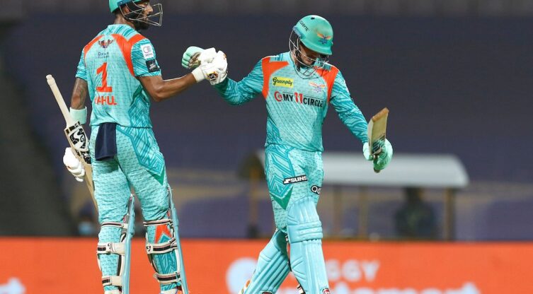കൊൽക്കത്ത നൈറ്റ് റൈഡേഴ്സിനെതിരെ ഒരു വിക്കറ്റു പോലും പോവാതെ ലഖ്നൗ 210 റൺസാണ് അടിച്ചെടുത്തത്. ഓപ്പണര്മാരായ ഡികോക്ക് 70 പന്തില് 140 റൺസെടുത്തപ്പോൾ കെഎൽ രാഹുല് 51 പന്തില് 68 റണ്സുമായി പുറത്താകാതെ നിന്നു.