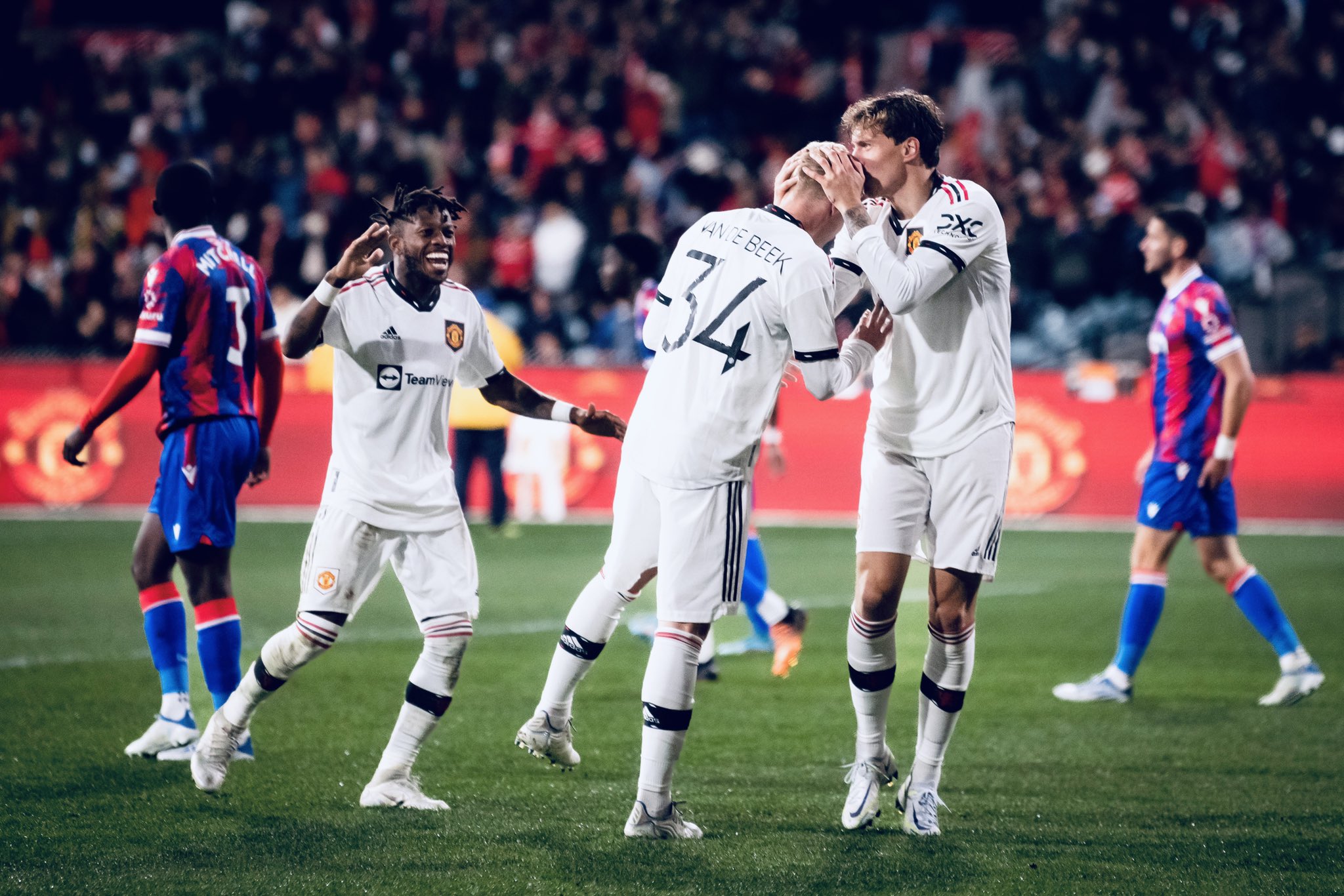 തുടര്ച്ചയായ മൂന്നാം പ്രീ സീസണ് മത്സരത്തിലും കിടിലൻ വിജയം കൈവരിച്ച് ഇംഗ്ലീഷ് ഫുട്ബോള് വമ്പന്മാരായ മാഞ്ചെസ്റ്റര് യുണൈറ്റഡ്. ലീഗിലെ എതിരാളികളായ ക്രിസ്റ്റല് പാലസിനെയാണ് ചുവന്ന ചെകുത്താന്മാര് തകര്ത്തത്. ഒന്നിനെതിരേ മൂന്ന് ഗോളുകള്ക്കാണ് യുണൈറ്റഡിന്റെ വിജയം.