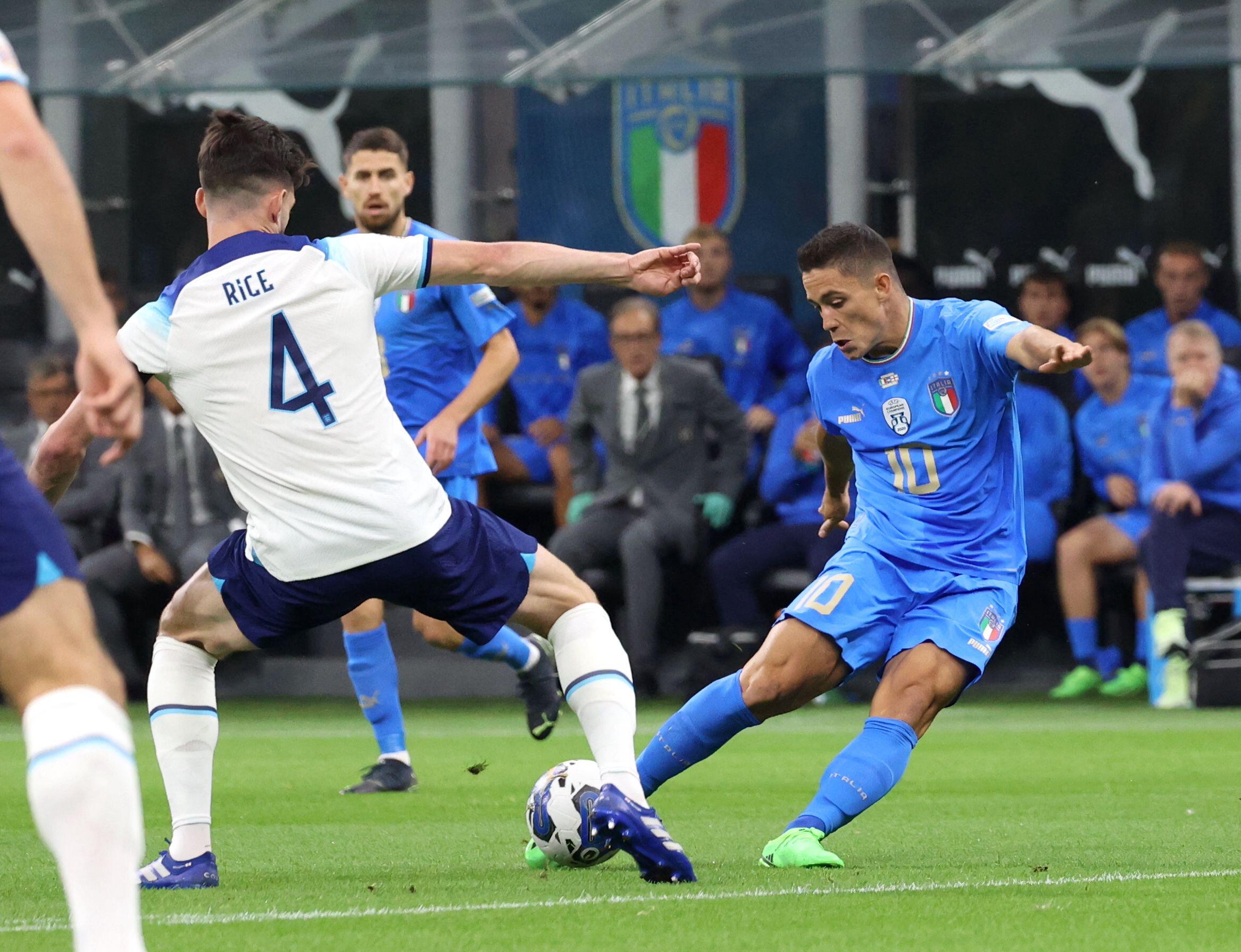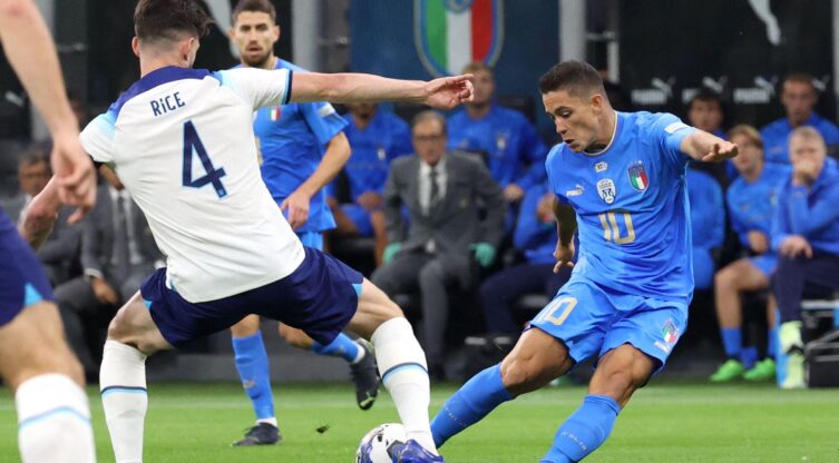 ഇംഗ്ലണ്ടിനെ ശാപം വിട്ടൊഴിയുന്നില്ല. നേഷൻസ് ലീഗിലെ തുടർച്ചയായ അഞ്ചാം മത്സരത്തിലും വിജയം കണ്ടെത്താൻ ആവാതെ സൗത്ത്ഗേറ്റും സംഘവും മടങ്ങി. ഇറ്റലിയിലെ സാൻ സിറോയിൽ നടന്ന മത്സരത്തിൽ എതിരില്ലാത്ത ഒരു ഗോളിനാണ് അവർ മാൻസിനിയോടും സംഘത്തിനോടും അടിയറവ് പറഞ്ഞത്. മത്സരത്തിൻ്റെ 68 ആമാത്തെ മിനിറ്റിൽ ബോനൂച്ചിയുടെ ലോങ്ങ് ബോളിൽ നിന്നും ഒരു മികച്ച ഫിനിഷിംഗിലൂടെ റാസ്പടോറി ആണ് ഇറ്റലിയുടെ ഗോൾ നേടിയത്. താരത്തിൻ്റെ ആദ്യ ഗോൾ ആയിരുന്നു ഇത്.