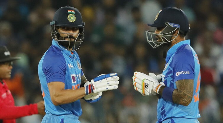 മറുപടി ബാറ്റിംഗിൽ തുടക്കത്തിൽ തന്നെ ഓപ്പണർമാരായ രോഹിത്തിനെയും രാഹുലിനെയും നഷ്ടപ്പെട്ടെങ്കിലും കോലി-സൂര്യകുമാർ സഖ്യം ടീമിനെ അനായാസം മുന്നോട്ടുനയിക്കുകയായിരുന്നു. 29 പന്തിൽ നിന്നും 39 റൺസുമായി കോലി നിൽക്കുമ്പോൾ 31 പന്തിൽ 69 റൺസുമായി യാദവും നിർണായകമായി.