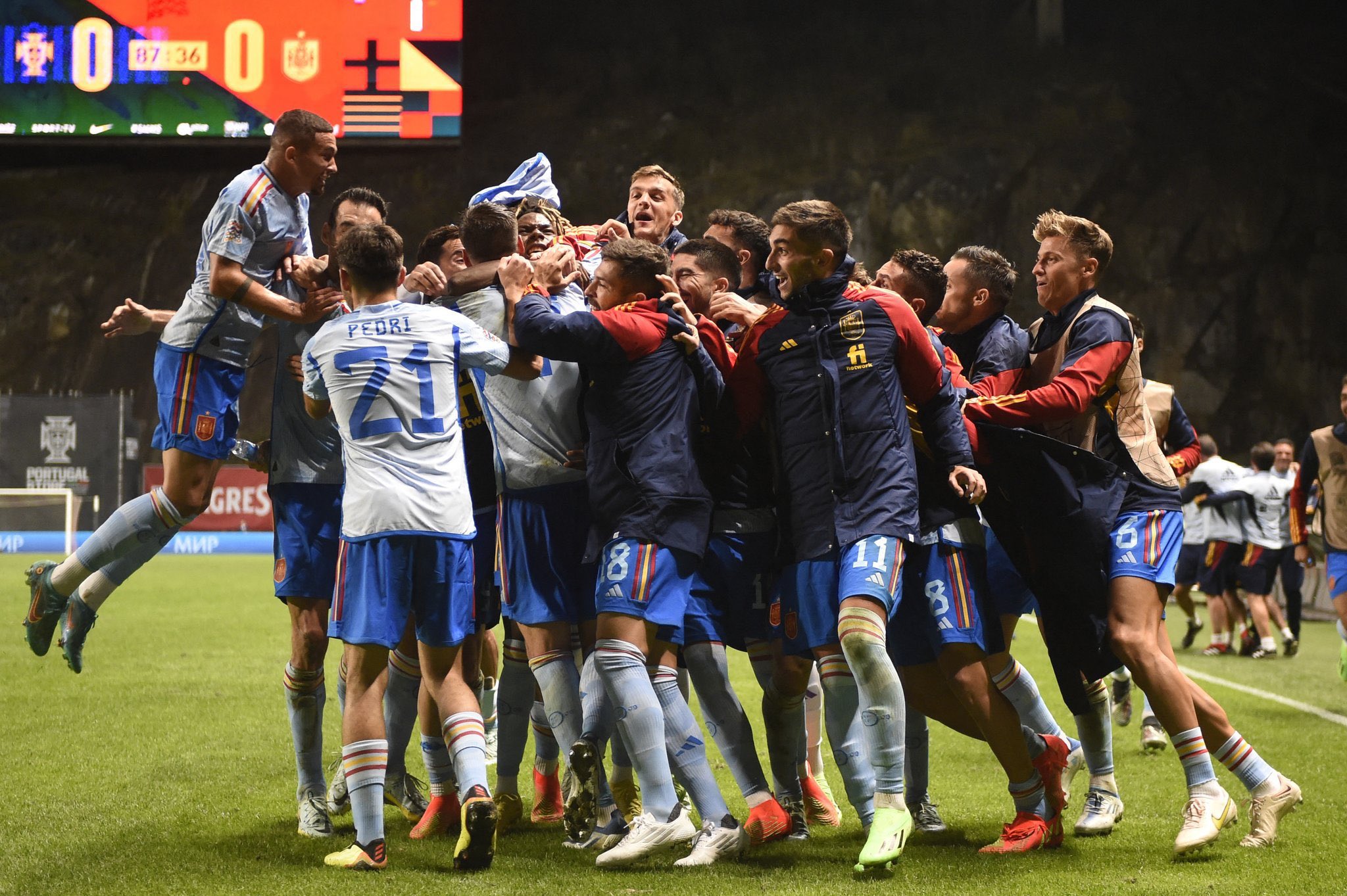 ബോൾ പൊസിഷനിൽ സ്പെയിൻ അല്പം മുന്നിൽ ആയിരുന്നെങ്കിലും ആക്രമണത്തിൽ ഇരു ടീമുകളും ഒരുപോലെ കട്ടക്ക് നിന്നിരുന്നു. പക്ഷേ അവസരങ്ങൾ ഇരുവർക്കും മുതലെടുക്കാൻ ആയില്ല. ക്രിസ്റ്റ്യാനോ റൊണാൾഡോയ്ക്കും ഒരു മികച്ച അവസരം ലഭിച്ചിരുന്നു. എന്നാൽ താരത്തിന് മുന്നിൽ ഉനായ് സിമൺ എന്ന സ്പാനിഷ് ഗോളി അവതരിക്കുകയായിരുന്നു. മത്സരത്തിൽ ഉടനീളം തകർപ്പൻ പ്രകടനമാണ് സ്പാനിഷ് ഗോളി പുറത്തെടുത്തത്. ഒടുവിൽ അവസാന നിമിഷമാണ് സ്പെയിനെ സെമിയിലേക്ക് എത്തിച്ച മൊറാട്ടയുടെ ഗോൾ വന്നത്. കാർവഹാളിൻ്റെ ബോക്സിലേക്ക് ഉള്ളൊരു ലോങ്ങ് ബോൾ ഒരു തകർപ്പൻ ഹെഡ്ഡിലൂടെ വില്യംസ് മൊറാട്ടയ്ക്ക് മറിച്ചുനൽകുകയായിരുന്നു. വലയിലേക്ക് തട്ടിയിടേണ്ട ആവശ്യം മാത്രമേ മൊറാട്ടയ്ക്ക് ഉണ്ടായിരുന്നുള്ളൂ. എന്തായാലും ഈയൊരു വിജയത്തോടെ നേഷൻസ് ലീഗിൻ്റെ സെമിയിൽ പ്രവേശിക്കുവാൻ സ്പെയിനിനായി.