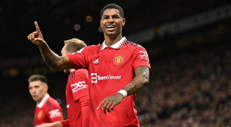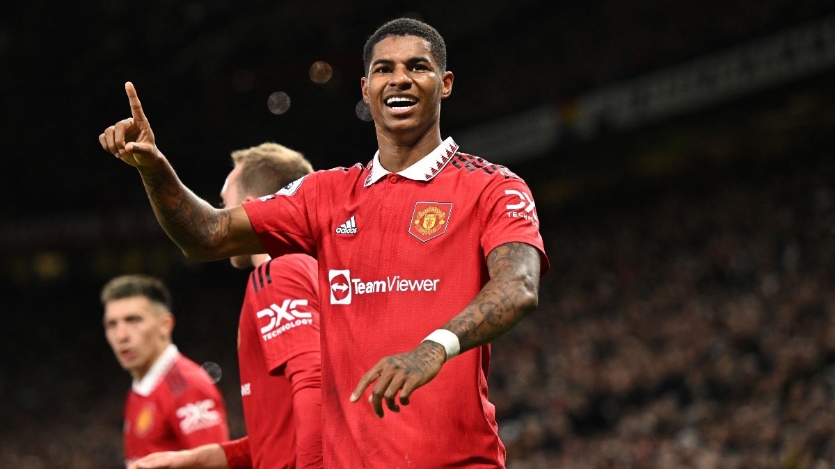 Manchester United players celebrate Alejandro Garnacho's goal against Real Sociedad on November 3, 2022
