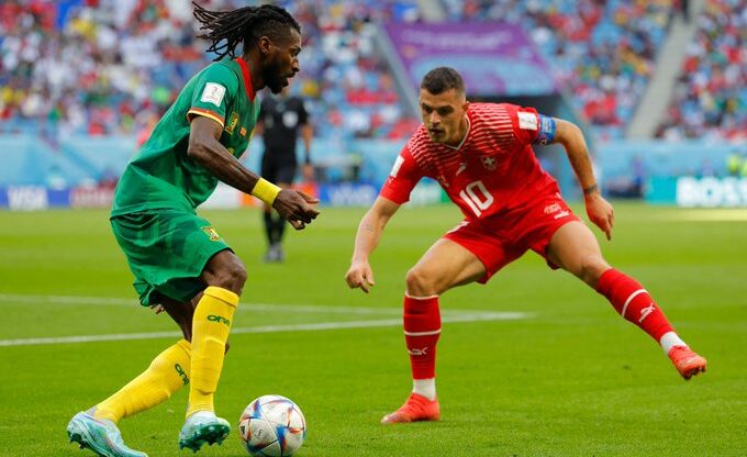 ഖത്തർ ഫുട്ബോൾ ലോകകപ്പിൽ കളം നിറഞ്ഞ് കളിച്ച കാമറൂണിനെ ഒറ്റ ഗോളിന് വീഴ്ത്തി സ്വിറ്റ്സർലൻഡ്. 48ാം മിനിറ്റില് നേടിയ ഒരു ഗോളിന്റെ മകവില് സ്വിറ്റ്സര്ലന്ഡ് ജയവും മൂന്ന് പോയിന്റും സ്വന്തമാക്കിയത്. ഫ്രഞ്ച് ലീഗ് വൺ ക്ലബ് സ്ട്രൈക്കറും സ്വിസ് ആരാധകരുടെ ഇഷ്ട താരവുമായ ബ്രീൽ എംബോളോയുടെ വകയാണു വിജയഗോള്.