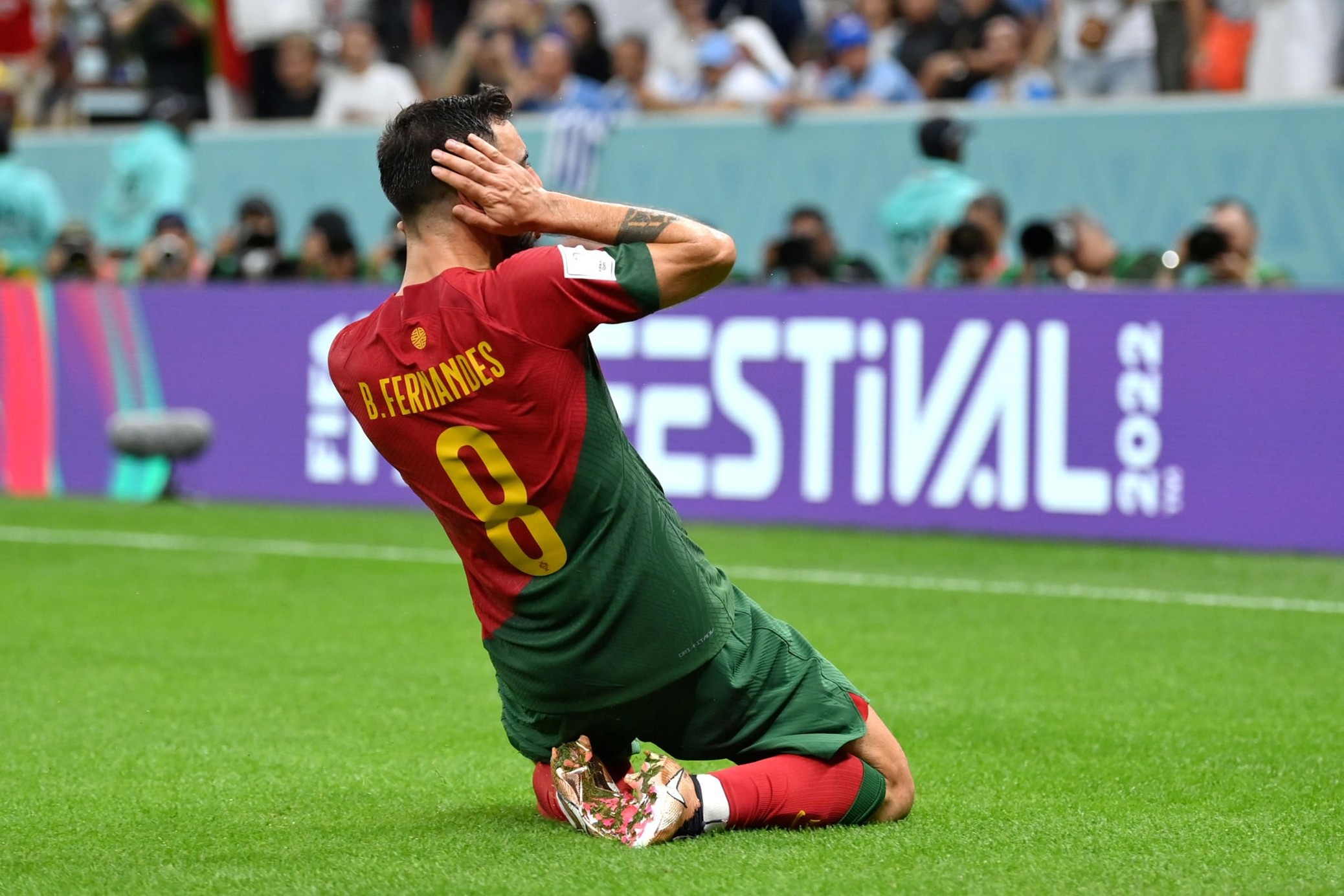 ഗോൾ രഹിതമായ ആദ്യ പകുതിക്ക് ശേഷം രണ്ടാം പകുതിയിൽ ആയിരുന്നു ഇന്നലെ രണ്ടു ഗോളുകളും പിറന്നത്. 54ആം മിനിറ്റിൽ ബ്രൂണോ, റൊണാൾഡോയെ ലാക്കാക്കി നൽകിയ ക്രോസ് ഒരു ഡയറക്ട് ഗോൾ ആയി മാറുകയായിരുന്നു. ഗോളിന് ശേഷം ക്രിസ്റ്റ്യാനോ റൊണാൾഡോയാണ് ഗോൾ നേടിയത് എന്നാണ് ഫിഫ വരെ കരുതിയത്. ആ തരത്തിൽ ആയിരുന്നു റൊണാൾഡോയുടെ സെലിബ്രേഷനും. ബ്രൂണോയും അങ്ങനെ തന്നെയാണ് കരുതിയിരുന്നത്. എന്നാൽ വിശദമായ പരിശോധനയിൽ പന്ത് റൊണാൾഡോയ്ക്ക് സ്പർശിക്കാൻ കഴിഞ്ഞിട്ടില്ലെന്ന് വ്യക്തമായതോടെ ഗോൾ ബ്രൂണോയ്ക്ക് അനുവദിക്കപ്പെടുകയായിരുന്നു. എന്തായാലും റൊണാൾഡോയുടെ ഇടപെടൽ കൊണ്ടായിരുന്നു ഗോളി കബളിപ്പിക്കപ്പെട്ടതും ഈയൊരു ഗോൾ നേടുവാൻ കഴിഞ്ഞതും. ശേഷം ഇഞ്ചുറി ടൈമിൽ ഉറുഗ്വായ് താരത്തിൻ്റെ കയ്യിൽ പന്ത് തട്ടിയതിനു ലഭിച്ച പെനൽറ്റി ഗോളാക്കിക്കൊണ്ട് ബ്രൂണോ തൻ്റെയും ടീമിൻ്റെയും രണ്ടാം ഗോളും സ്വന്തമാക്കി. പെനൽറ്റി നേടിയെടുത്തതും ബ്രൂണോ തന്നെയായിരുന്നു. അതോടെ കഴിഞ്ഞ ലോകകപ്പിലെ പ്രീക്വാർട്ടറിൽ ഉറുഗ്വായോട് ഏറ്റ തോൽവിക്ക് പകരം വീട്ടുവാനും പോർച്ചുഗലിന് സാധിച്ചു. കളിയിലെ താരമായി തിരഞ്ഞെടുക്കപ്പെട്ടതും ബ്രൂണോ തന്നെ.