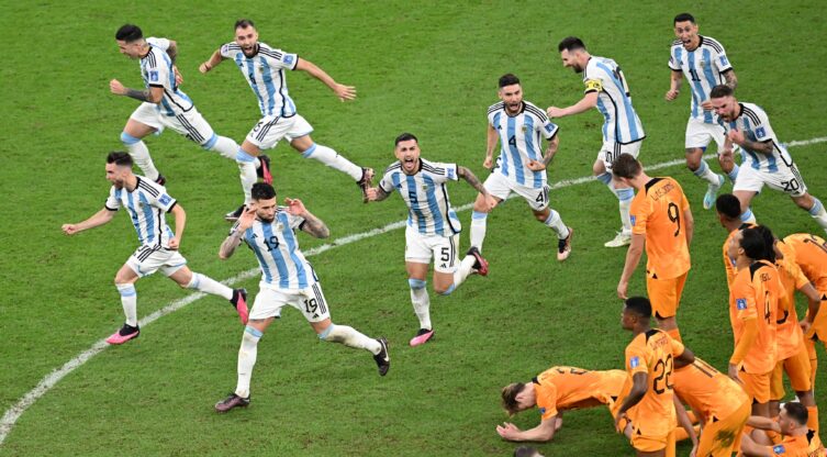 നെതർലൻഡ്സിൻ്റെ വാൻ ഡേയ്ക്ക്, ബെർഹൗസ് എന്നിവരുടെ കിക്കുകൾ തടുത്തിട്ട് കൊണ്ട് എമിലിയാനോ മാർട്ടിനെസ് മതിലായി നിന്നു. തുടർന്ന് വന്ന കൂപ്മെയ്നേഴ്സ്, വെഗോർസ്റ്റ്, ലൂക് ഡിയോങ് എന്നിവർ ലക്ഷ്യം കണ്ടെങ്കിലും ഫലമുണ്ടായില്ല. അർജൻ്റീനയ്ക്കായി മെസ്സി, പരേഡെസ്, മോണ്ടിയേൽ, ലൗത്താരോ എന്നിവർ ലക്ഷ്യം കണ്ടതോടെ മത്സരം അർജൻ്റീന സ്വന്തമാക്കുകയായിരുന്നു. എൻസോ ഫെർണാണ്ടസ് മാത്രമാണ് അർജൻ്റൈൻ നിരയിൽ പെനൽറ്റി പാഴാക്കിയത്. അതോടെ ഒരിക്കൽ കൂടി നെതർലൻഡ്സ് അർജൻ്റീനയ്ക്ക് മുന്നിൽ തലകുനിക്കുകയായിരുന്നു. 2014ലെ സെമിഫൈനലിലും, ഇത്തവണത്തെ ക്വാർട്ടർ ഫൈനലിലും പെനൽറ്റി ഷൂട്ടൗട്ടിൽ തന്നെ അർജൻ്റീന നെതർലൻഡ്സിൻ്റെ വിധിയെഴുതി.
